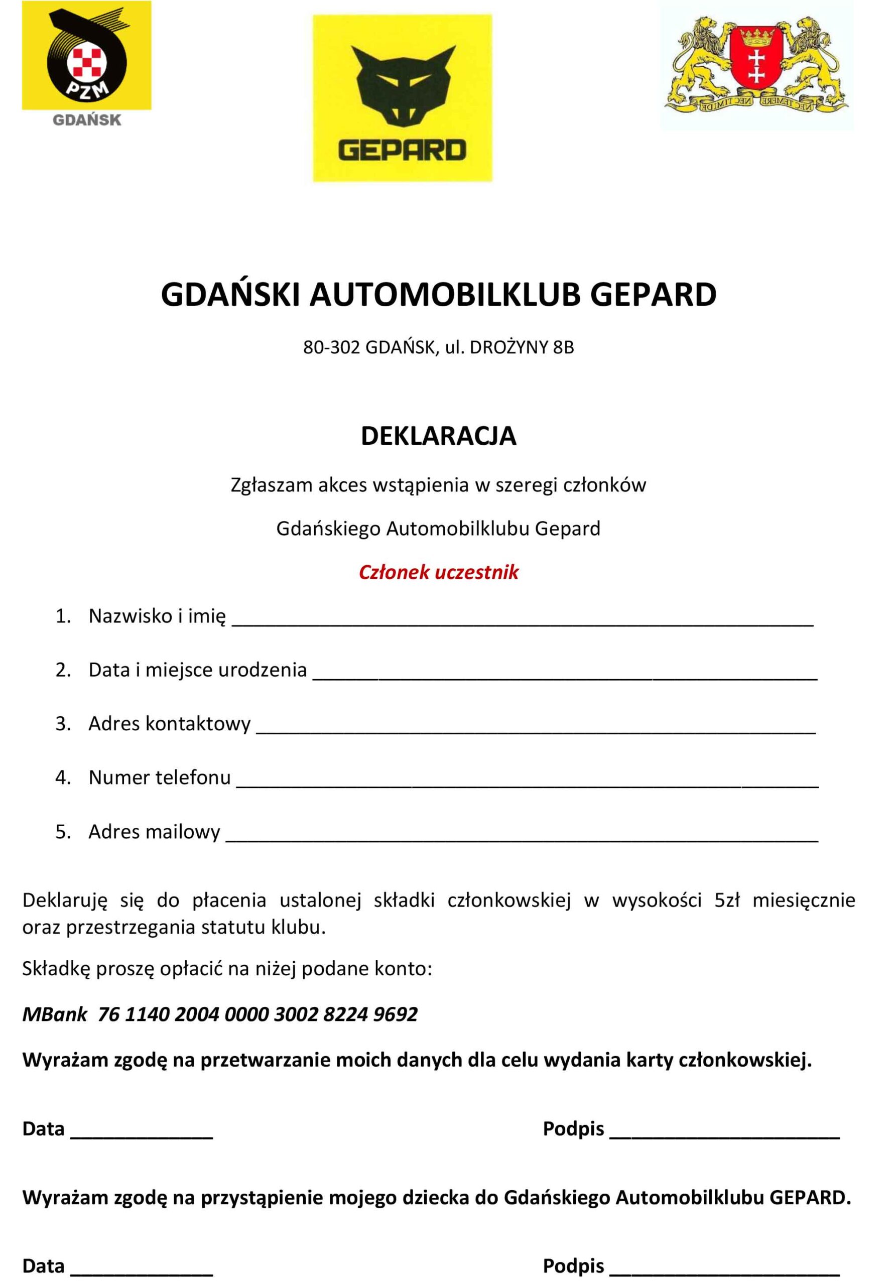 Gdański Automobilklub Gepard, zwany dalej „Klubem” jest Stowarzyszeniem zrzeszającym na zasadach dobrowolności, osoby działające na rzecz motoryzacji.